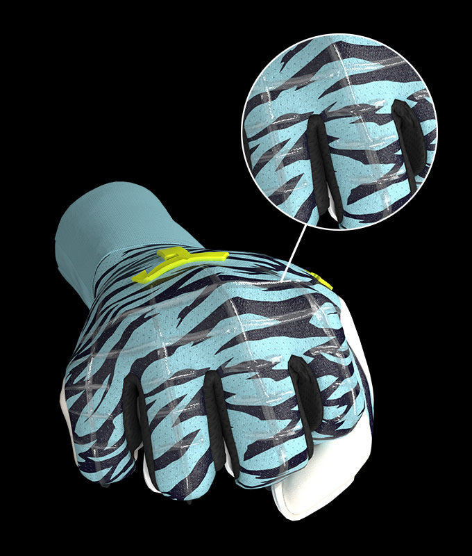 De siliconen lijnen volgen elke beweging van je vingers en zorgen voor extra grip bij het stompen.