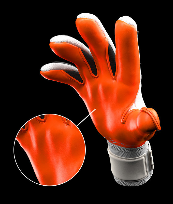 De combinatie van Roll Finger Flat Cut zorgt voor een extreem comfortabele pasvorm en meer contactoppervlak op de bal.