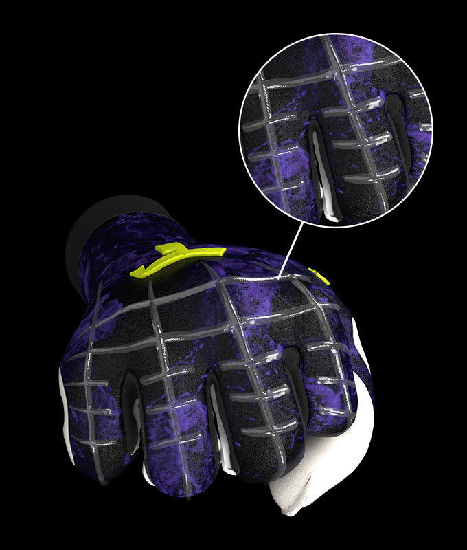 De siliconen lijnen volgen elke beweging van je vingers en zorgen voor extra grip bij het stompen.