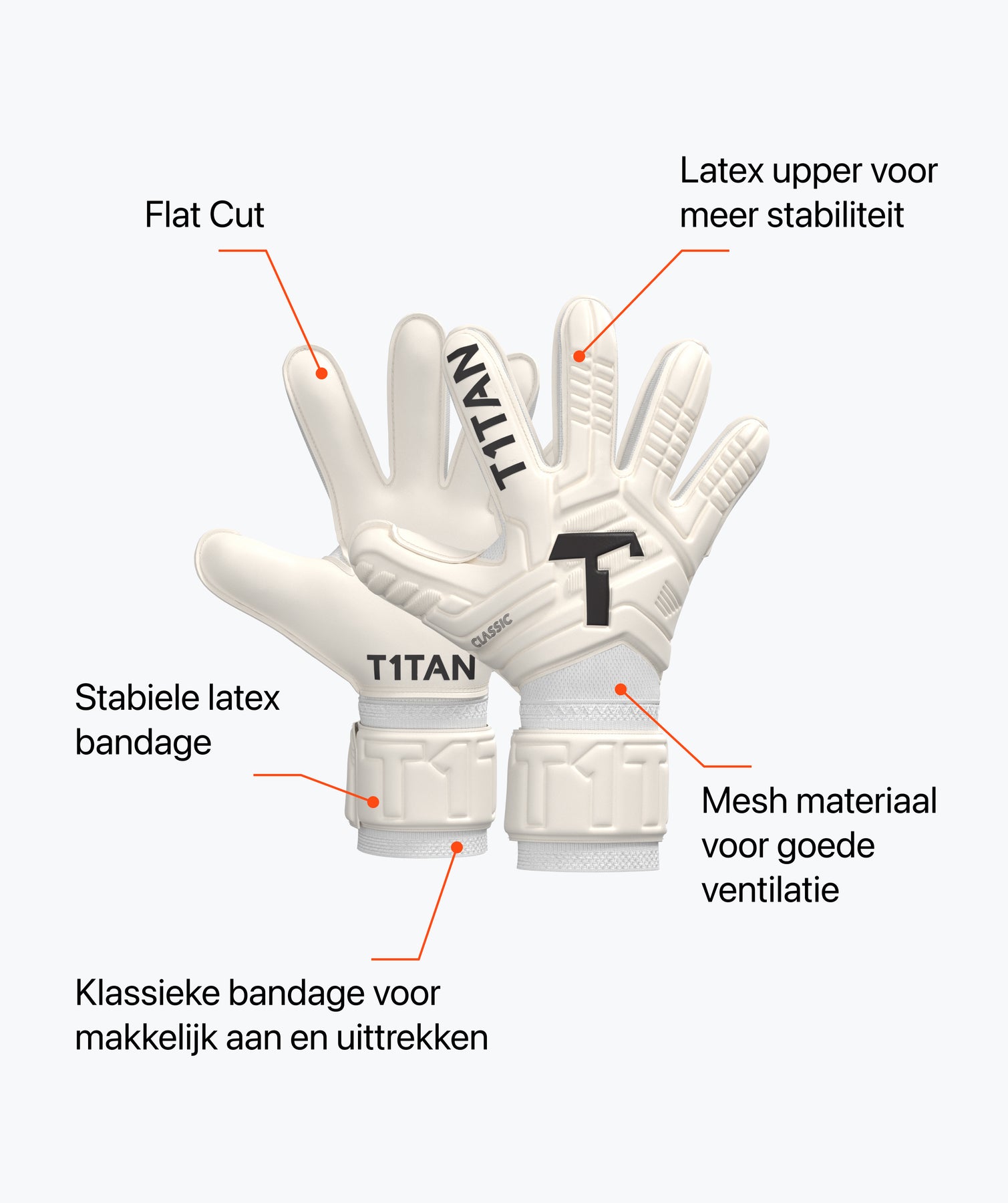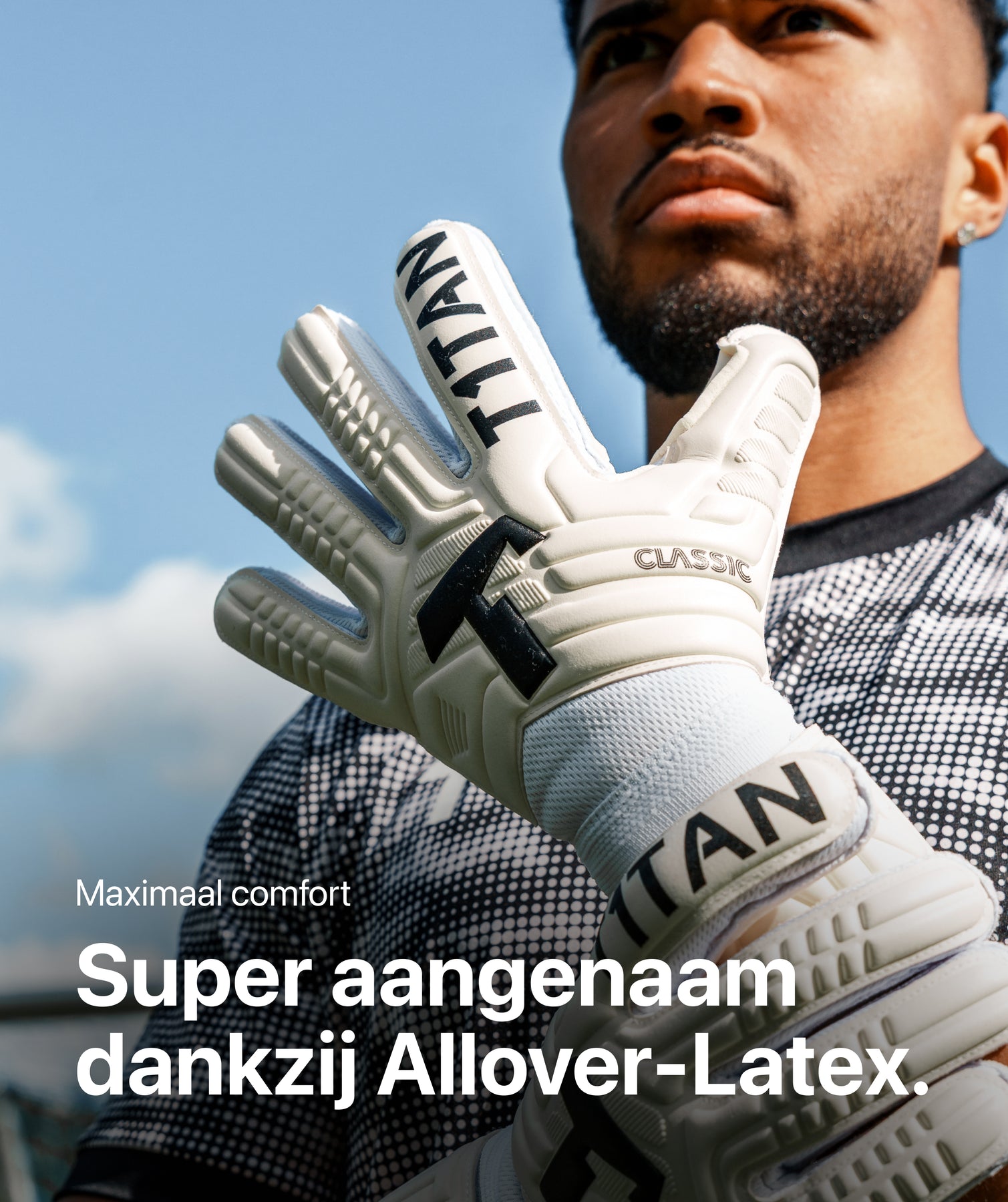 Geïnspireerd door onze beste profmodellen: de CLASSIC 1.0 WHITE-OUT biedt je sterke grip en is extreem slijtvast. Dit maakt het de perfecte T1TAN handschoen voor ambitieuze, beginners en veeleisende keepers.