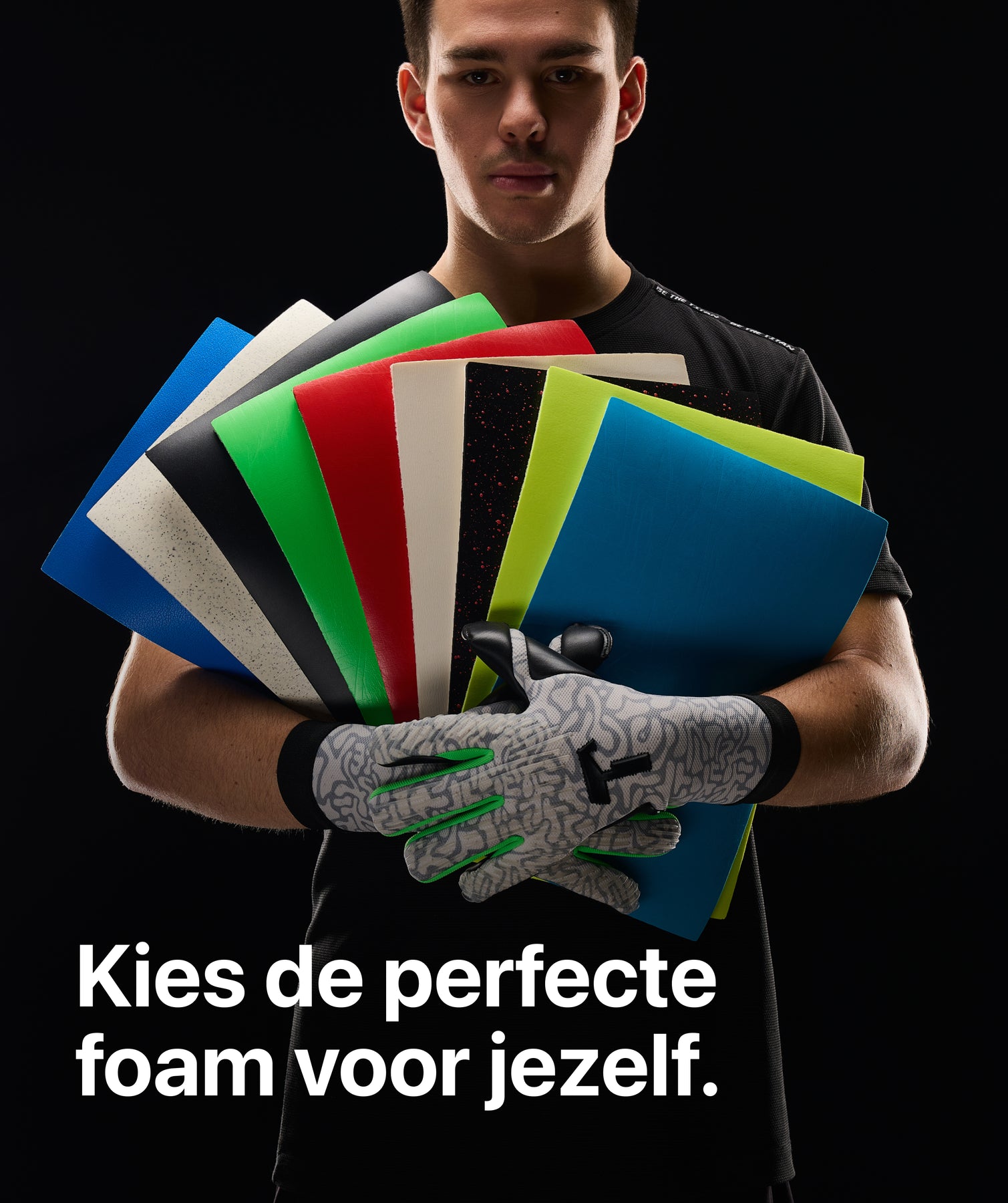U bepaalt hoe de handschoen eruit moet gaan zien: pasvorm, foam, kleuren en bedrukking!
