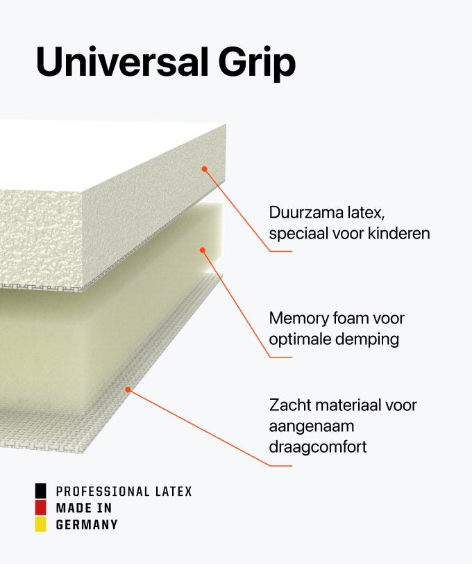 De Kids Grip: Onze Gorilla Grip latex is speciaal voor kinderen kan tegen een stootje en maakt indruk met zijn hoge slijtvastheid en duurzaamheid. -