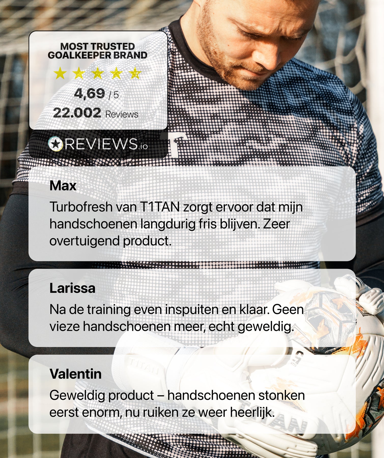 Zweet, intensieve trainingen, veel wedstrijden – als keeper ken je het probleem: vroeg of laat beginnen zelfs je favoriete handschoenen onaangenaam te ruiken. Met TURBOFRESH voorkom je dat dit gebeurt en blijven je handschoenen van binnen fris, schoon en hygiënisch.